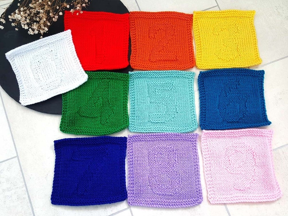 0-9 Numbers 6" Squares Knitting Pattern
